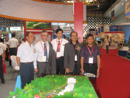 虹潤公司的展臺以中國傳統(tǒng)元素為主導設(shè)計風格,在展臺的頂端,一副中國書法卷軸畫緩緩展開,“虹潤儀表”4個宋體大字在祥云的襯托下顯的雄渾有力。虹潤不怕遠征難的巨幅宣傳畫位于虹潤公司前臺的正上方,畫中蒼鷹在云端翱翔,虹潤員工團結(jié)一心,攜手并肩,朝著既定的目標勇攀高峰,奮勇前進。在展臺上虹潤公司還展示了按照順昌公司1:220比例制作的縮微全景沙盤。