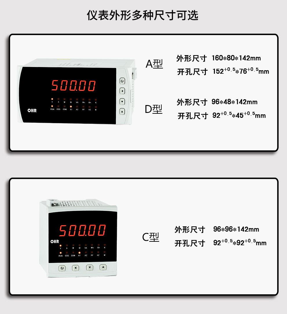 OHR-C100系列單相電量表為新一代可編程智能儀表,它采用大規(guī)模集成電路,應(yīng)用數(shù)字采樣技術(shù),對單相電氣線路中的電壓、電流、有功、無功、功率因素、相位值、頻率、有功電能、無功電能及視在功率進(jìn)行實(shí)時(shí)測量與顯示。