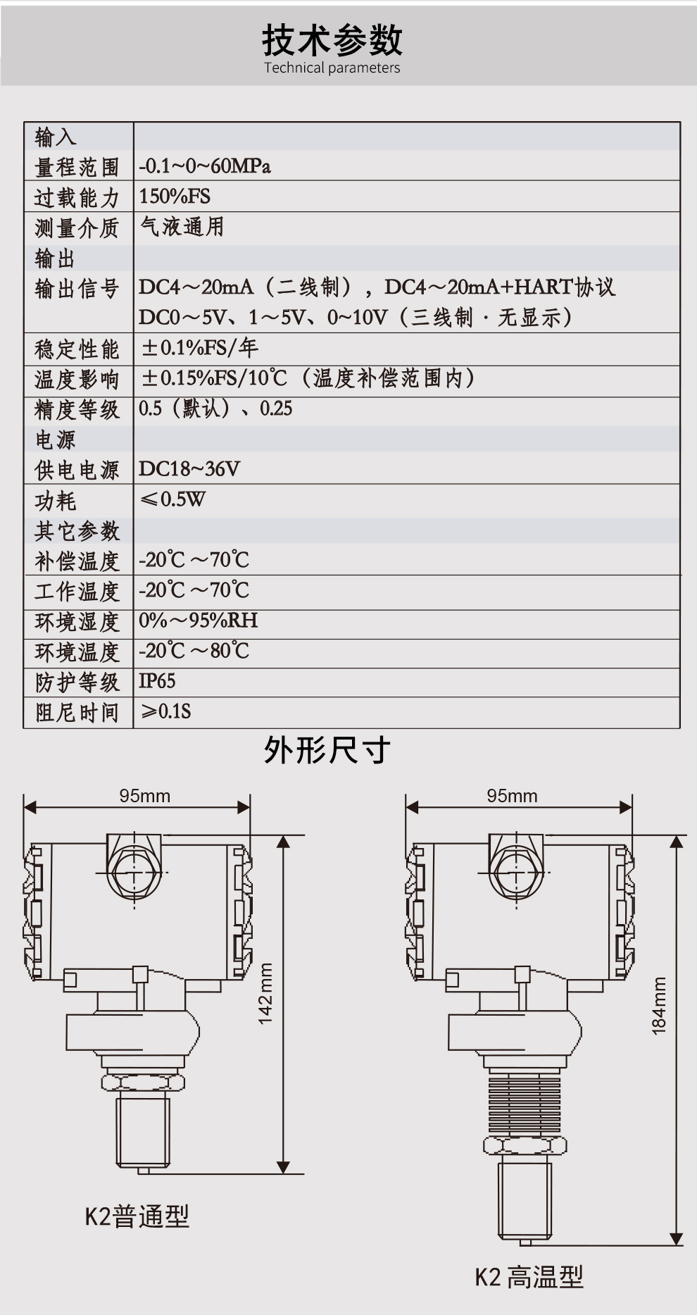 K系列壓力變送器采用具有國(guó)際先進(jìn)水平的擴(kuò)散硅傳感器,配合高精度電子元件,經(jīng)嚴(yán)格的工藝過程裝配而成。充分發(fā)揮了傳感器的技術(shù)優(yōu)勢(shì),使該系列壓力變送器具有優(yōu)異的技術(shù)性能。該變送器抗過載和抗沖擊能力強(qiáng)、溫度漂移小、穩(wěn)定性高,具有很高的測(cè)量精度。