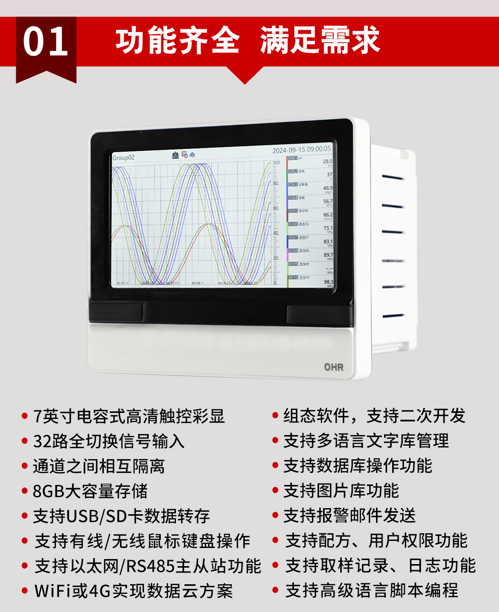 OHR-H800系列嵌入式控制器融合了無紙記錄儀、嵌入式組態(tài)、數(shù)據(jù)云方案等功能,具有較高的開放性和較低的使用門檻。通過采集處理與自由組態(tài),即可形成適合各種現(xiàn)場(chǎng)工況的專屬產(chǎn)品。